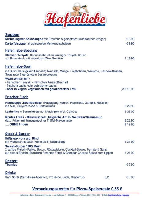 AHOI! Hafenliebe Freunde, ...läckaaa Suppen und Muscheln auf unserer aktuellen, herbstlichen Wochenkarte. Wir freuen uns schon sehr auf Euch. Euer Hafenliebe-Team